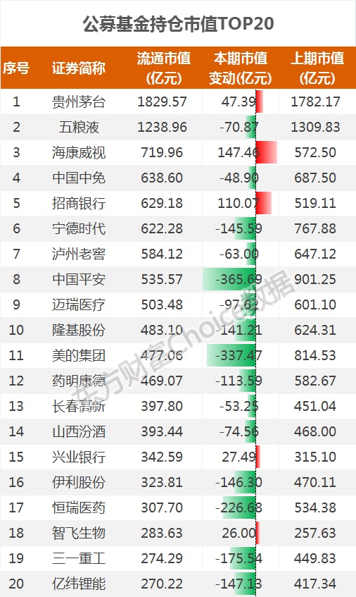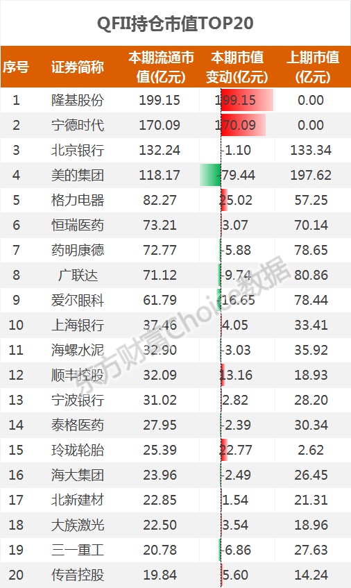 其中市值增加最多的是隆基股份,持股市值增加200亿元;市值减少最多的是美的集团,持股减少了79亿元。