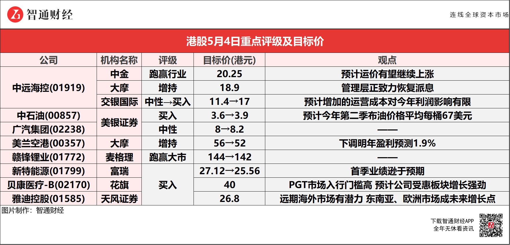 中金称,近期运价超预期,认为趋势有望持续,上调中远海控(01919)今明年盈利预测21%、12%至490亿人民币和227亿人民币;