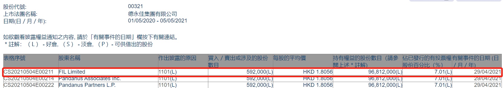 Limited增持德永佳集团(00321)59.2万股,每股作价1.8056港元,总金额约为106.89万港元。增持后最新持股数目约为9681.2万股,最新持股比例为7.01%。