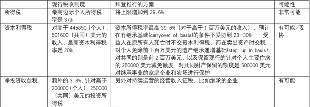 拜登的税收方案包括对资本利得税和收入所得税的修改。下表总结了一些关键税收的现状和正在进行的变化。注意:我们正在等待该计划的最终细节,当我们获得财政部与拜登的预算一起公布的拟定条款的具体细节时(预计在5月份),我们将重新调整。