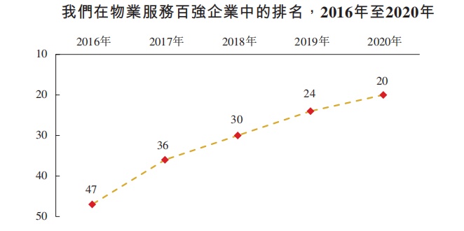 融信服务在物业赛道中也算的上是成长性较高的“中上游选手”——物业服务百强企业中排名中,2020年排名第20位,2021年排名第19位。