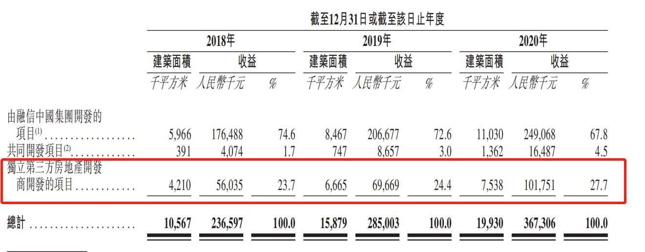 从2016年对外服务开始,融信服务来自于第三方开发商项目的收入便呈迅速增长之势。