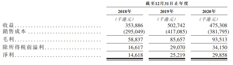 具体而言,2018年至2020年,该公司实现收益分别为3.54亿港元、5.03亿港元、4.75亿港元,后两年分别同比增长42%及同比减少5%;实现年度溢利则分别为0.15亿港元、25.22亿港元、29.86亿港元,后两年分别同比增长72.6%、18.6%。