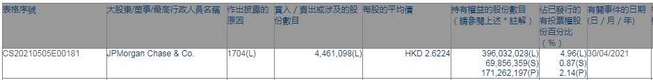 智通财经APP获悉,香港联交所最新资料显示,4月30日,摩根大通减持希望教育(01765)446.1098万股,每股作价2.6224港元,总金额约为1169.88万港元。减持后最新持股数目为3.96亿股,最新持股比例为4.96%。