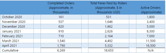 此外,截至2021年4月底,约11%的活跃司机还从森淼科技租赁汽车。