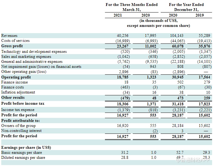 招股书显示,DLocal2019年和2020年的营收分别为5528.9万美元和1.04亿美元,同期利润分别为1560.2万美元和2818.7万美元。