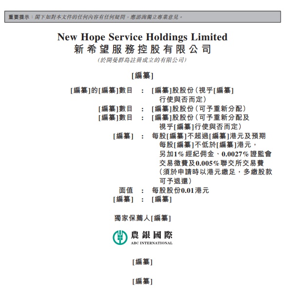 智通财经APP获悉,5月9日,港交所最新信息显示,新希望服务控股有限公司通过港交所上市聆讯,农银国际担任其独家保荐人。