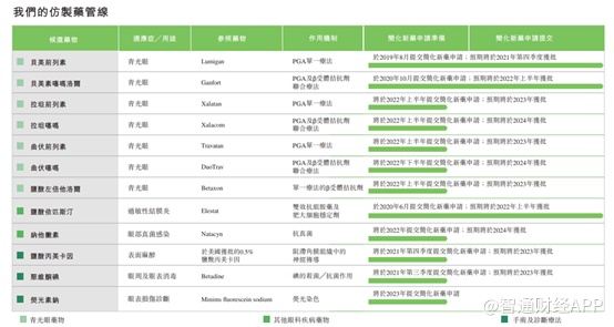 再看仿制药,在仿制药的布局上,兆科眼科更多聚焦在青光眼这一适应症上。