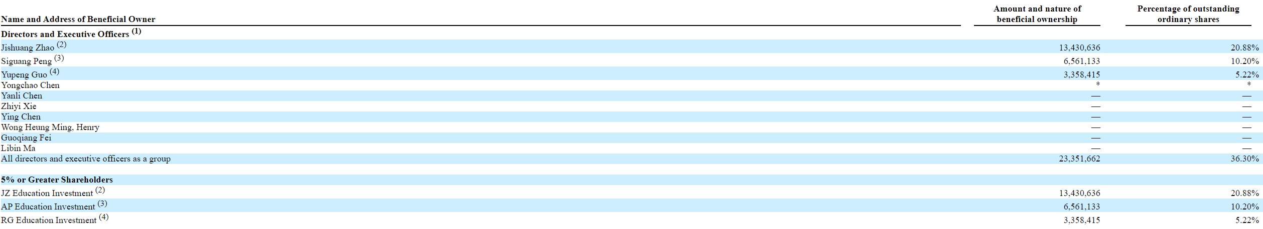 首席执行官兼董事Siguang Peng持有公司10.2%的股权;