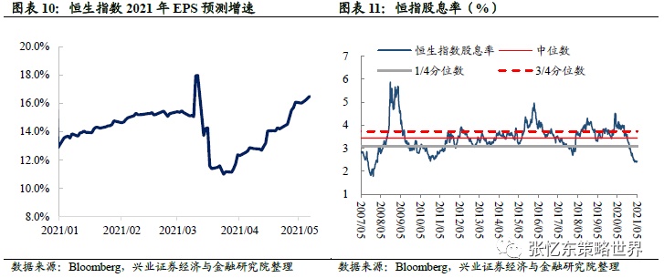 恒生指数2021年EPS预测增速为16.5%。