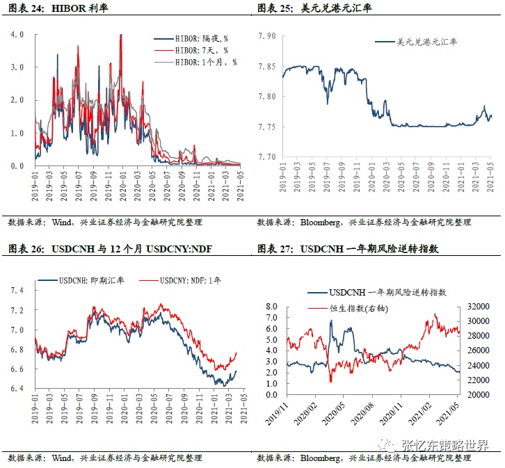 汇率市场:截至5月7日,美元兑港元汇率为7.7659,USDCNH即期汇率为6.4159。USDCNH一年期风险逆转指数为2.02,低于上周收盘的2.10,处于2011年以来的56%分位数水平。