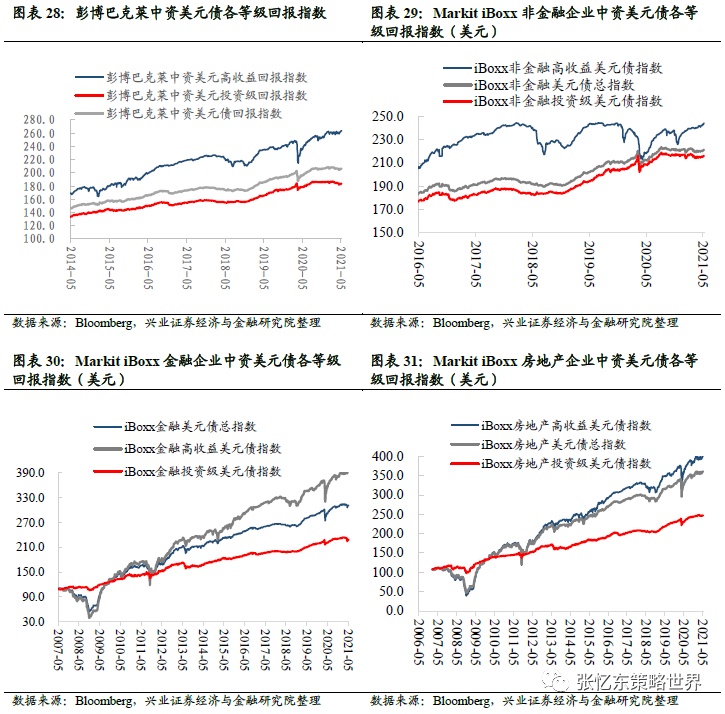 Markit iBoxx非金融企业中资美元债回报指数涨0.32%;投资级回报指数涨0.31%;高收益回报指数涨0.39%。