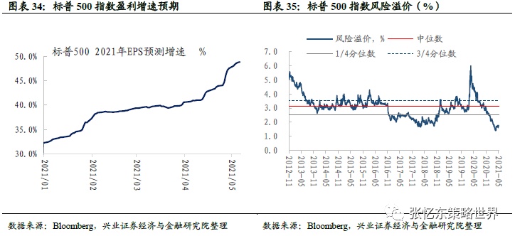 风险溢价水平和盈利预期:截至5月7日,标普500指数2021年EPS预期增速为48.8%;截至5月7日,股权风险溢价为1.72%,高于上周的1.71%,低于2010年11月以来的1/4分位数。(注:股权风险溢价=标普500市盈率倒数-十年期国债收益)。