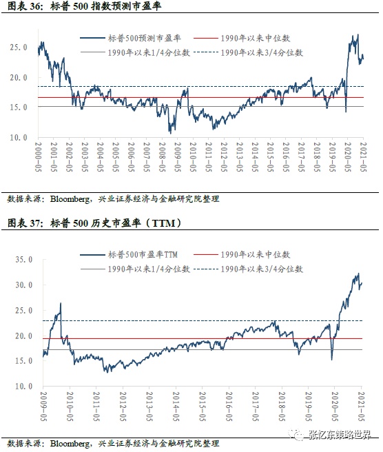 截至5月7日,标普500预测市盈率为23.1倍,高于上周收盘的23.0倍,高于1990年以来的3/4分位数。