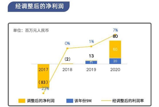 数据显示,剔除股份基础付款、优先股公允价值变动、可转换贷款公允价值变动以及上市开支等非经营性影响因素的经调整净利润,百融云创2017-2020年分别约为-8320万元、-160万元、1310万元及8000万元,显然已经进入业绩正向循环。