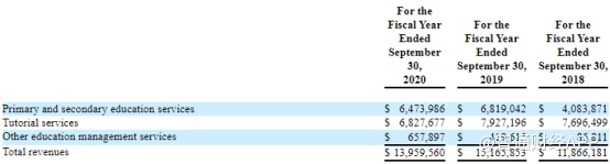 可见,该三大辅导中心是针对不同的目标学生群体,提供差异化的线下辅导内容,并由此成为公司重要的收入来源。数据显示,截至2019年9月底和2020年9月底,辅导教育业务占公司当期总收入比重分别达到52%和49%。