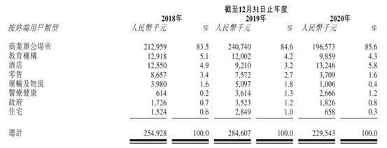 倘若以收入来源来划分,公司的大部分营收来自于供应及铺装地材产品,近三年为营收贡献占比超过70%,第二大收入来源于仅供应地材产品,而铺装地材产品及其他服务的收入占比较少。而按客户终端划分,美迪乐的客户终端仍以商业办公场所为主,2018-2020年,该消费终端分别占到公司当期总营收的83.5%、84.6%及85.6%。而在2020年公共场合受到疫情不同程度的影响,不管是施工还是开业均有所下降,因此即便商务办公场所贡献的收入比例有所提升,但2020年仅录得1.96亿元,较2019年下降18.34%。