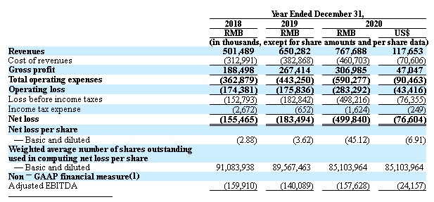 智通财经APP获悉,容联云(RAAS.US)向美国SEC递交了20F报告,披露了公司截至2020年12月31日的2020年年报和最新股权结构。财报显示,该公司2020年营收7.68亿元(人民币,下同),上年同期为6.50亿元。