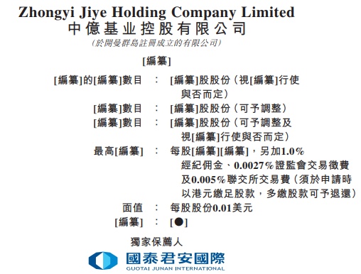 智通财经APP获悉,据港交所5月11日披露,中亿基业控股有限公司(下称:中亿基业)向港交所主板递交上市申请,国泰君安国际担任其独家保荐人。