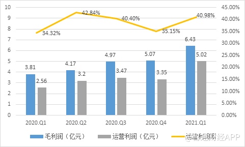 该公司毛利润和运营利润保持按季度持续增长态势,该公司全面数字化转型,也大大降低了运营成本,提升运营效率,2021年第一季度运营利润率40.98%,同比和环比分别提升6.66个百分点和5.83个百分点。此外,该公司股东净利润也保持按季度增长态势(去年第四季度不考虑特殊项目影响),期间股东净利润4.54亿元,同比增长86.9%。