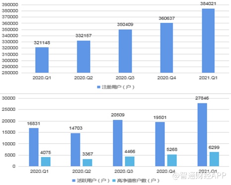 以客户需求中心,为客户打造最大的组合回报率,截止2021年3月,该公司注册用户384021户,同比增长19.6%,按季度持续攀升,第一季度活跃用户数(包括共同基金)27846户,同比增长65.4%,高净值客户也呈现稳步提升态势,期间为6299户,同比增长54.6%。该公司通过投资业绩吸引外部投资者,并保持稳定的客户粘性。