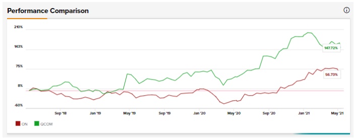 虽然与高通比较,分析师似乎更看好安森美半导体,但这两家公司的长期定位似乎都非常明确。基于未来12个月的上涨潜力,高通或许是一个更好的选择。