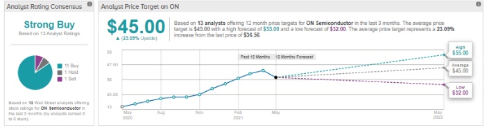 该分析师还表示,安森美半导体提供Q2的营收预测约为16.2亿美元,较市场普遍预期14.9亿美元还要高出9%;得益于产品组合和约85%以上的利用率,毛利率的预期值也比市场预期高出近100个基点。对此,该分析师认为,凭借其在汽车、电动汽车和工业的市场地位,并在专注增长、供应紧张、对产品和铸造重新定位,以及倾向于投资的环境下,安森美半导体将处于有利地位。