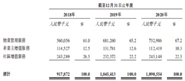 招股书显示,截至2020年末,京城佳业的在管面积为2910万平方米,其中住宅物业的在管面积超过70%,约为2050万平方米;其余商业物业、公共及其他物业以及胡同物业的在管面积分别为120万平方米、130万平方米、610万平方米。