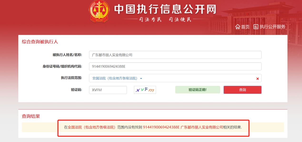 智通财经APP由此打开中国执行信息公开网上,输入“广东都市丽人实业有限公司”及该公司的组织机构代码,均没有发现此一信息。