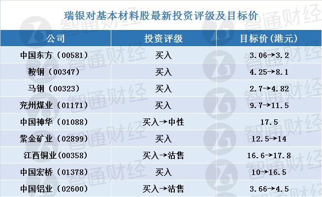 智通财经APP获悉,瑞银发布研究报告,预计内地材料板块强劲表现难以持续,调整板块相关企业的投资评级及目标价,行业首选紫金矿业(02899)、中国宏桥(01378)及鞍钢(00347)。