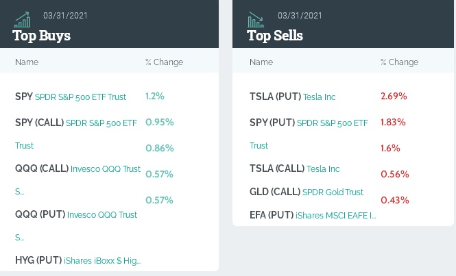 前五大卖出标的分别是:特斯拉看跌期权(TSLA.US,PUT)、标普500指数看跌期权、特斯拉看涨期权、黄金ETF看涨期权(GLD.US,CALL)和欧澳远东指数ETF-iShares MSCI看跌期权(EFA.US,PUT)。