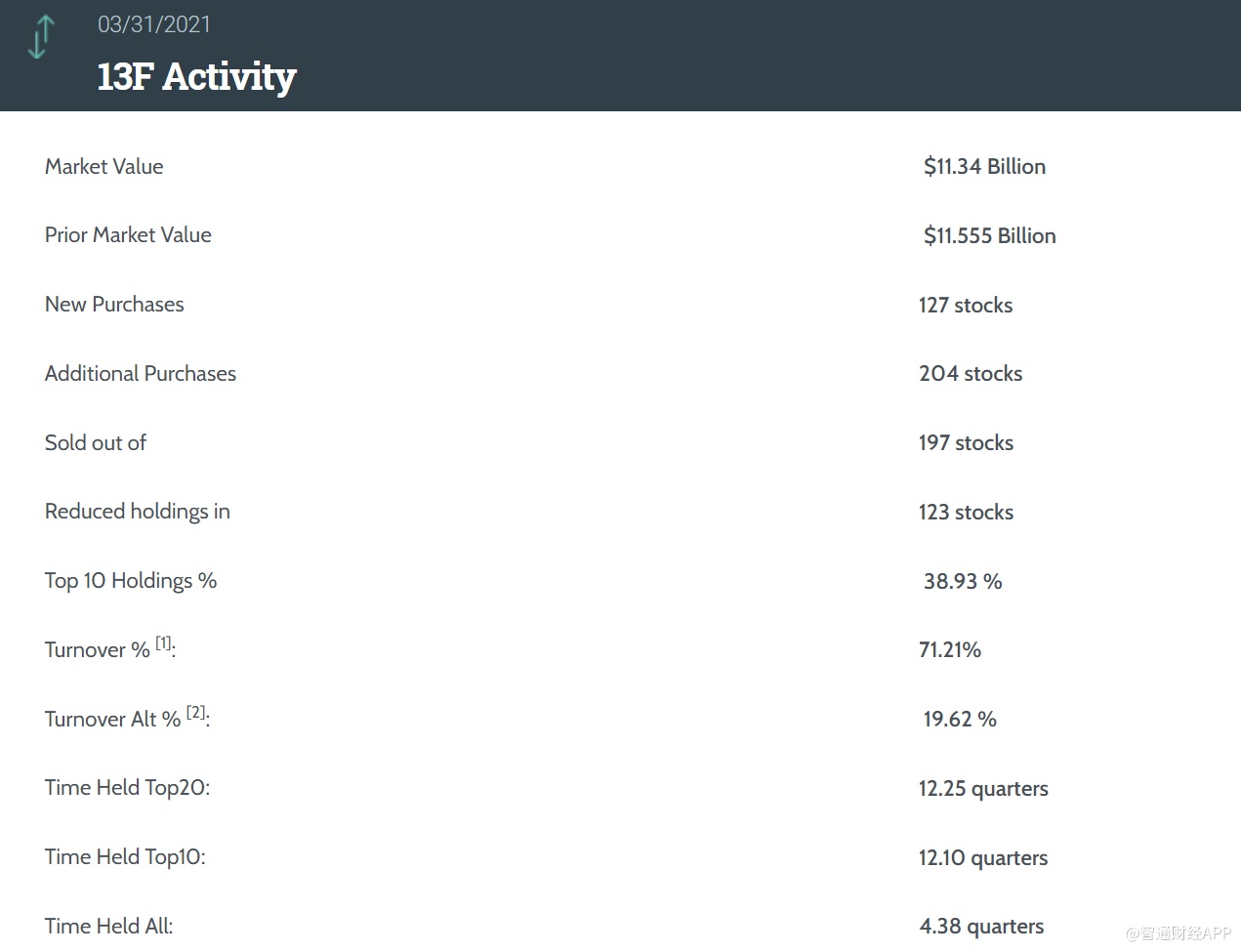 据统计,桥水2021年第一季度持仓总市值为113.4亿美元,此前为115.55亿美元。桥水Q1持仓组合中新增了127只个股,增持了204只个股。同时,桥水还减持了123只个股并清仓了197只个股,前十大持仓标的占总市值的38.93%。