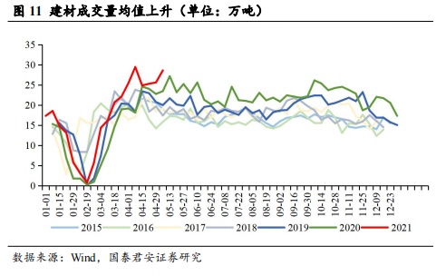 上周建材成交量均值环比上升。上周建材成交均值28.61万吨,环比上升11.68%,同比上升21.89%