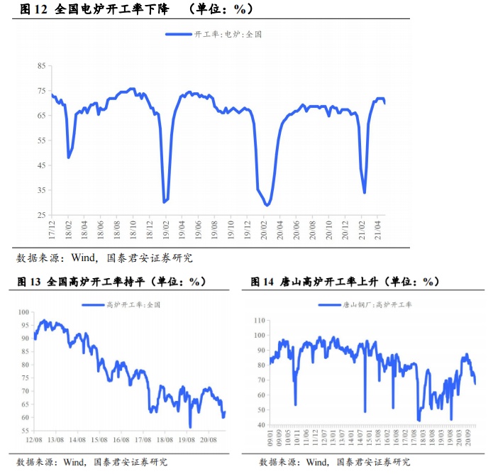 上周唐山高炉开工率上升,全国高炉开工率与前一周持平。上周唐山高炉开工率50.79%,较前一周上升0.79个百分点;全国高炉开工率62.02%,与前一周持平。全国电炉开工率69.87%,较前一周下跌1.92个百分点。唐山产能利用率为62.34%,较前一周上升1.05个百分点;全国盈利钢厂比率为78.53%,较前一周下跌0.61个百分点。
