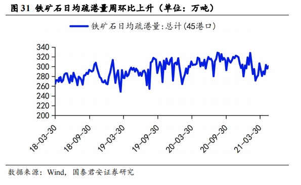上周铁矿石到货量周环比下降,铁矿石日均疏港量周环比上升。上周铁矿石到货量1071.9万吨,周环比下降23.1万吨;铁矿石日均疏港量301.13万吨,周环比上升5万吨。
