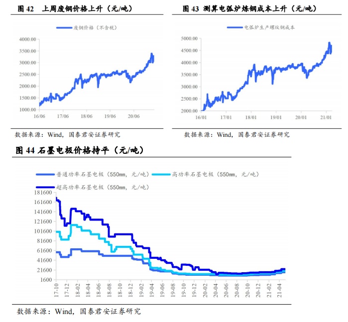 上周废钢价格上升,普通功率石墨电极价格与前一周持平,高功率石墨电极价格与前一周持平,超高功率石墨电极价格与前一周持平。上周唐山废钢价格涨185元/吨至3240元/吨,涨幅6.06%。上周电弧炉炼钢成本跌47.46元/吨至4646.4元/吨,跌幅1.01%。上周普通功率石墨电极价格16625元/吨与前一周持平;高功率石墨电极价格19250元/吨与前一周持平;超高功率石墨电极价格23000元/吨与前一周持平。