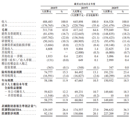 财务方面,公司总收入由2018年的4.89亿元增至2020年的8.17亿元;净利润由2018年的5820万元增至2020年的1.51亿元。