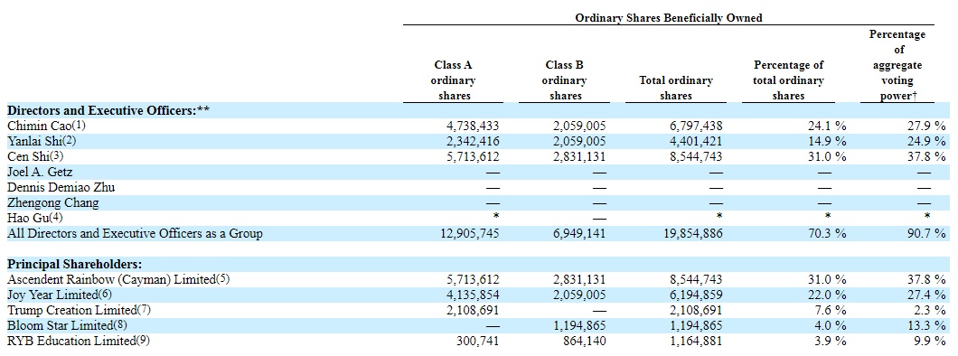 截止至2021年3月31日,公司联合创始人、执行董事兼董事会主席Chimin Cao持有公司24.1%的股权;