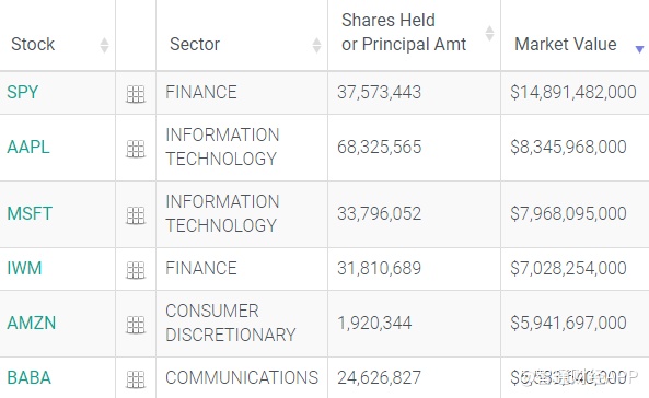 iShares罗素2000 ETF(IWM.US)位列第四,仓约3181万股,持仓市值约70.28亿美元。