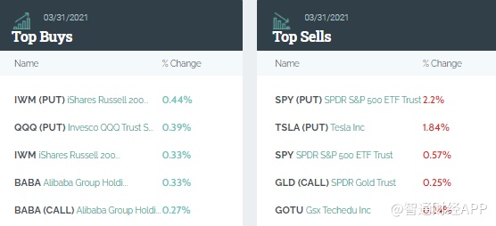 从持仓比例变化来看,高盛前五大买入股分别是:iShares罗素2000 ETF看跌期权(IWM.US.PUT)、纳指100ETF看跌期权(QQQ.US.PUT)、iShares罗素2000 ETF、阿里巴巴和阿里巴巴看涨期权(BABA.US.CALL)。