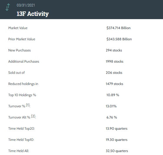 据统计,景顺集团第一季度持仓总市值达3747.14亿美元,上一季度总市值为3435.88亿美元,环比增长9.06%。景顺集团在第一季度的持仓组合中新增了294只个股,增持了1998只个股。同时,景顺集团还减持了1479只个股,清仓了206只个股。其中前十大持仓标的占总市值的10.89%。