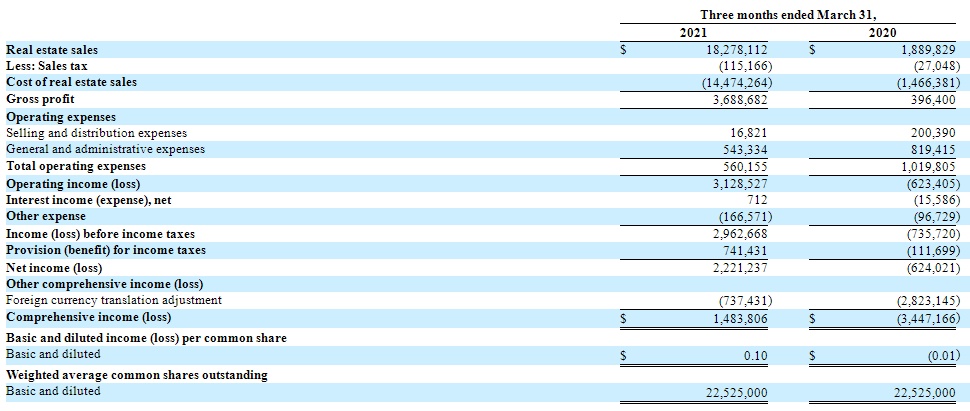据智通财经APP获悉,北京时间5月17日,汉广厦房地产(HGSH.US)向美国证券交易委员会(SEC)提交了截至2021年3月31日的2021财年第二季度报告(10Q)。财报显示,该公司2021年Q2总营收为1827.81万美元,上年同期为188.98万美元,同比增长867.2%。