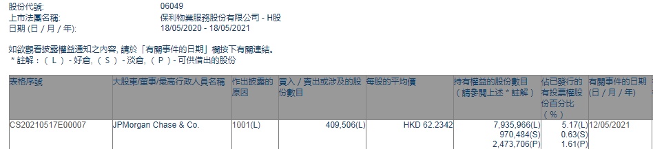 智通财经APP获悉,香港联交所最新资料显示,5月12日,JPMorgan Chase & Co.增持保利物业(06049)40.95万股,每股作价62.23港元,总金额约为2548.5万港元。增持后最新持股数目约为793.6万股,最新持股比例为5.17%。