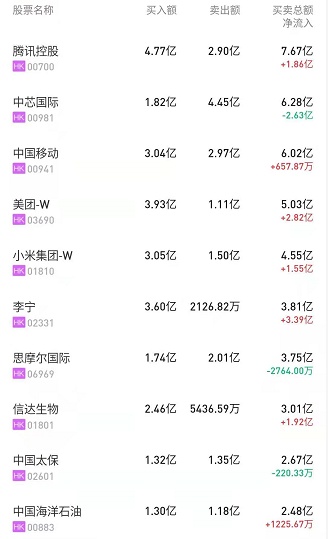 此外,农业银行(01288)、中海油(00883)分别获净买入2.26亿、1225万港元。