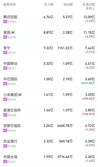 北水净买入最多的个股是李宁(02331)、美团-W(03690)、腾讯(00700)。北水净卖出最多的个股是中芯国际(00981)。
