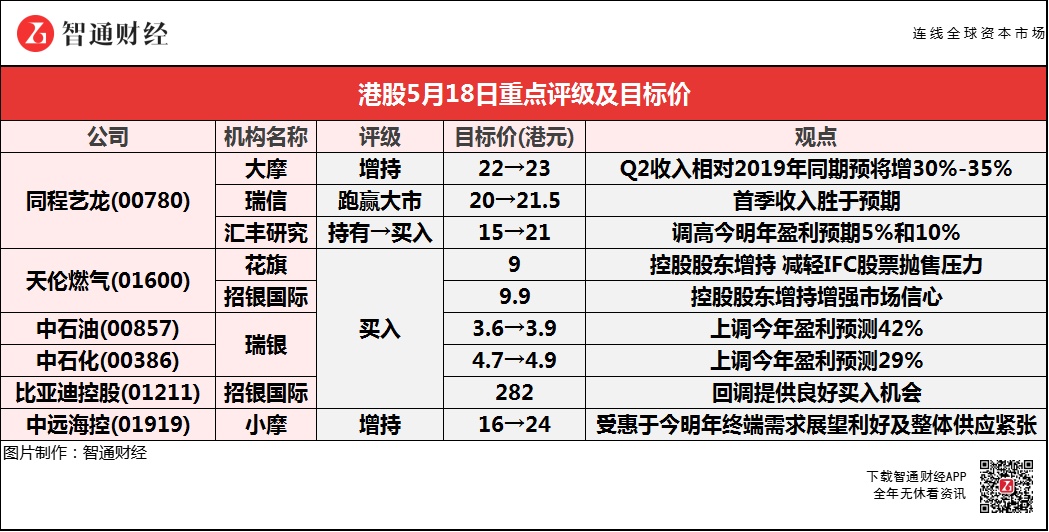 汇丰研究称,因收入和利润率预期提高,上调同程艺龙(00780)今明年盈利预期5%和10%,预计第二季将较2019年同期加速增长,主因国内旅游市场快速复苏;