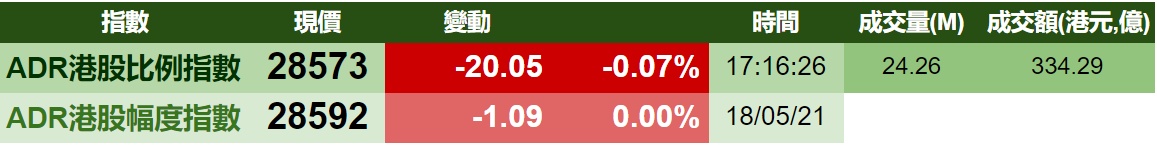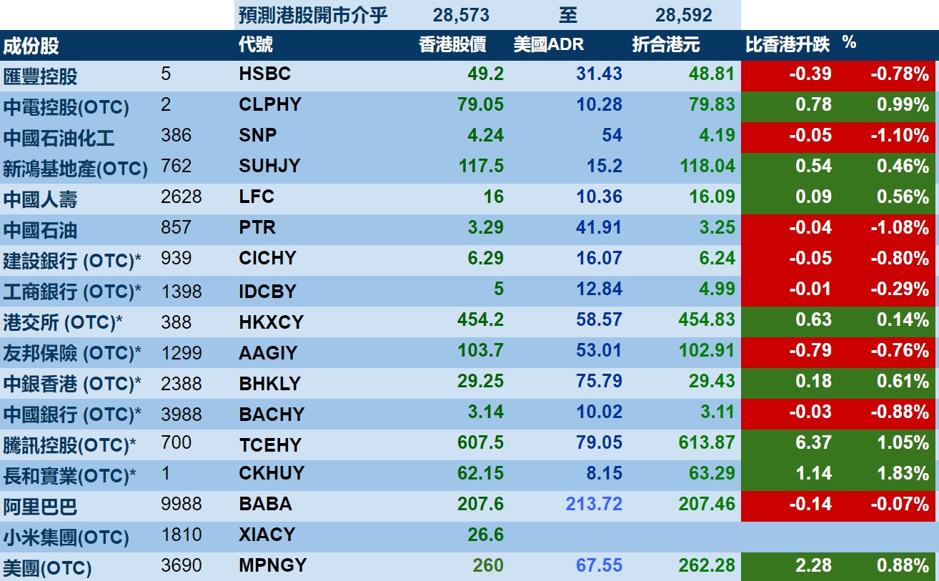智通财经APP获悉,周二美股三大指数齐跌,港股ADR指数也微跌,按比例计算,收报28573点,跌20.05点或-0.07%。