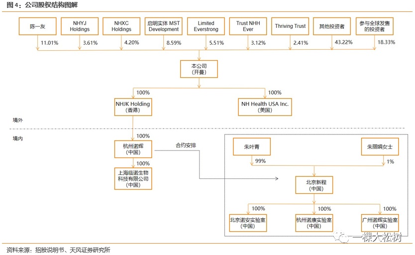 公司上市后陈一友博士单独持股11.01%,朱叶青先生通过NHYJ Holding及Trust持有共6.73%股份,启明创投持股8.59%。