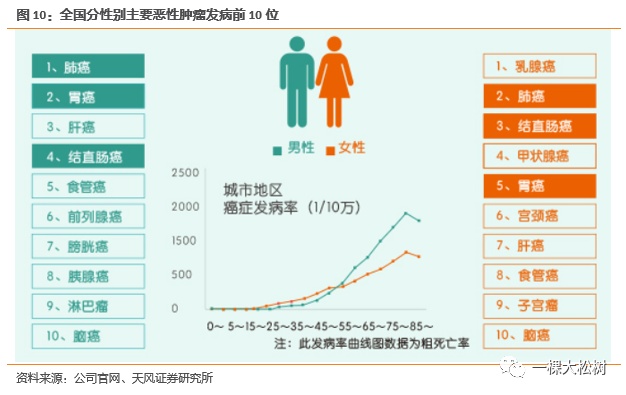 肿瘤早筛有望成为消费类产品。肿瘤早筛主要是针对没有症状的风险人群,鉴于肿瘤随着年龄的增加发病风险提高,且不同癌种的指南中都提到中高危人群定期检查,其中年龄在50岁以上基本高发癌症均推荐筛查,我们认为随着人们的健康意识的提高,肿瘤早筛有望成为刚需型筛查产品。