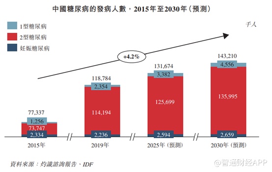 糖尿病是发病率极高的慢性疾病之一,根据灼识咨询报告,全球糖尿病的发病人数2019年为4.87亿人,预计在2030年将达到6.08亿人。而中国,2019年糖尿病的发病人数为1.19亿人,预计2030年将达到1.43亿人。